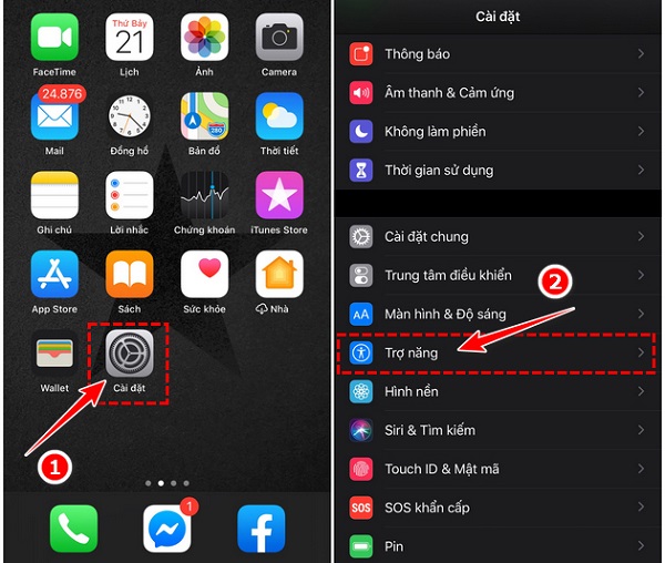 - Bước 1: Tại Menu màn hình chính của điện thoại iPhone 11, bạn chọn vào phần Cài đặt (Settings) -> Sau đó, kéo xuống dưới tìm đến dòng Trợ năng (Accessibility) thì nhấn vào đó.