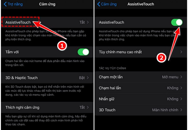 Hướng dẫn nhanh: Cài đặt ->Trợ năng ->Cảm ứng -> AssistiveTouch -> Kích hoạt