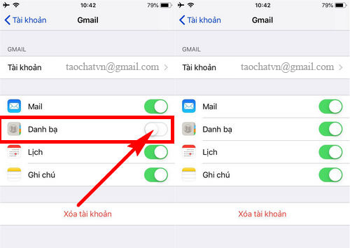 • Bước 4: Cuối cùng, các bạn sẽ lựa chọn kích hoạt Danh bạ từ tài khoản Gmail để hoàn tất quá trình thiết lập đồng bộ danh bạ iPhone lên Gmail.