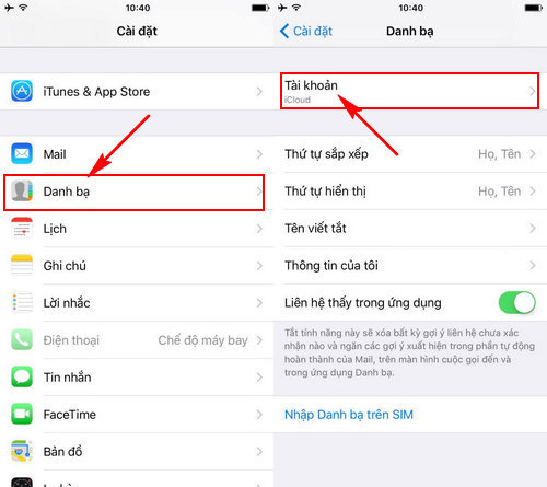 Để thực hiện cách đồng bộ danh bạ iPhone lên Gmail chúng ta thao tác như sau: