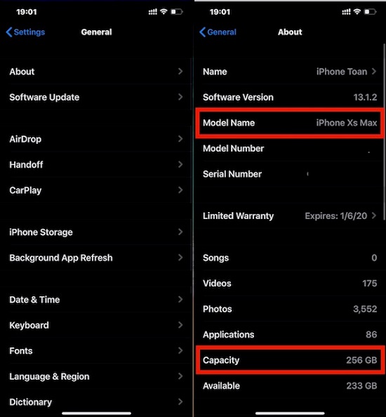 Hướng dẫn cách kiểm tra dòng, dung lượng, model iPhone