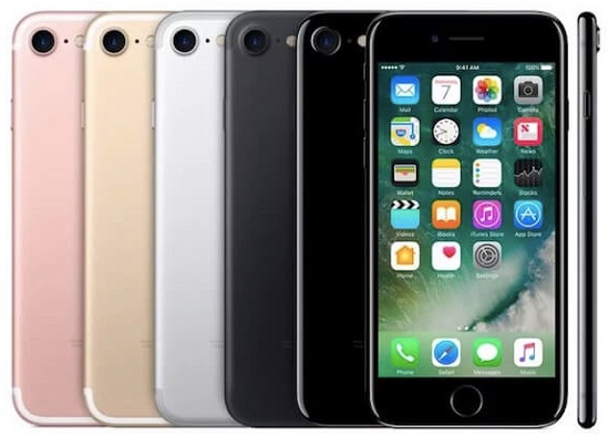 • 10. iPhone 7: iPhone 7 có kích thước màn hình 4.7 in, mặt trước được gắn gương, mặt sau là aluminium. Tương tự iPhone 6 và 6s nhưng mỏng hơn, ở mặt sau có viềng ngang phía trên và phía dưới (Không có lỗ cắm headphone jack 3.5mm, cổng sạc lightning cũng là cổng của headphone). Có màu đỏ.