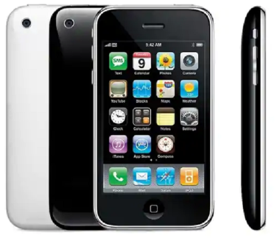 • 2. iPhone 3G và iPhone 3GS: Dòng iPhone 3G và iPhone 3GS, mặt sau được làm bằng nhựa cong, không có dải màu đen bên dưới như iPhone đời đầu. Màu trắng là 3GS. Hãy xem hình bên dưới: