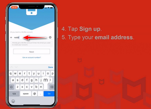 - Tiến hành đặt mật khẩu cho tài khoản cần đăng ký với ứng dụng McAfee Mobile Security.