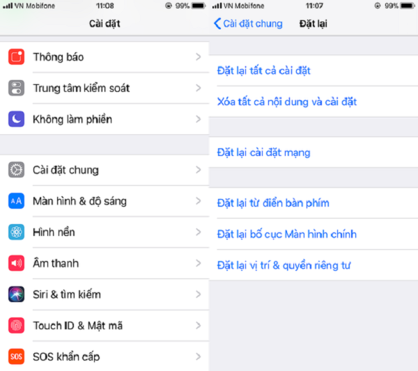 - Nếu tất cả các phương pháp trên không thành công, bạn hãy thử khôi phục cài đặt gốc trên thiết bị. Cách này sẽ xóa sạch toàn bộ các thiết lập, dữ liệu trên thiết bị của bạn, do đó trước khi thực hiện cách này các bạn nên sao lưu toàn bộ dữ liệu quan trọng thông qua iCloud hoặc iTunes.