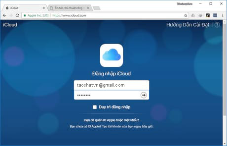 Bước 1: Các bạn truy cập địa chỉ iCloud trên máy.