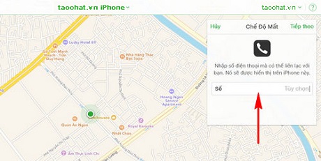 Bước 7: Cuối cùng, hệ thống sẽ yêu cầu bạn nhập số điện thoại liên lạc mà iPhone bị mất sẽ hiển thị ngoài màn hình để liên lạc với bạn giúp tìm iPhone bị mất khi tắt máy và được khởi động lại.