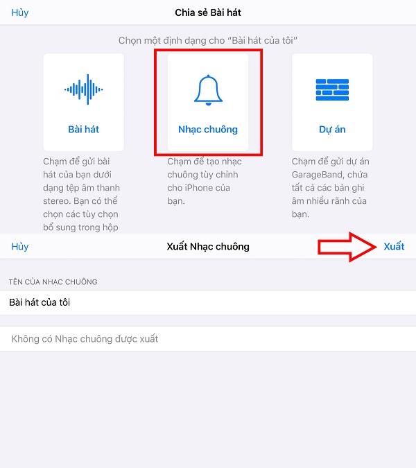 • Bước 9: Tiếp theo chọn Nhạc chuông -> Xuất vậy là hoàn thành rồi nhé.
