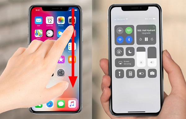 - Bước 1: Vuốt xuống từ trên cùng bên phải của màn hình iPhone X để truy cập Trung tâm điều khiển (Control Center)