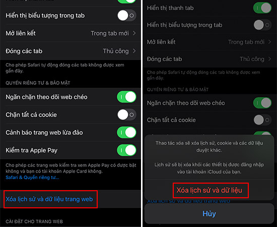 Lưu ý: Sau khi xóa lịch sử dữ liệu, bạn không thể khôi phục lại những dữ liệu cần thiết. Ngoài ra, các bạn sử dụng thêm phần mềm diệt virus trên iPhone.