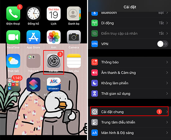 - Bước 1: Các bạn đi tới mục Cài đặt trên thiết bị -> chọn Cài đặt chung