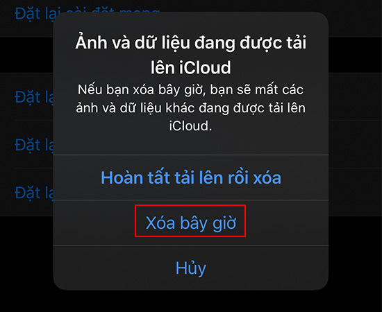 - Bước 3: Ấn Xóa bây giờ để kết thúc quá trình cài đặt lại điện thoại
