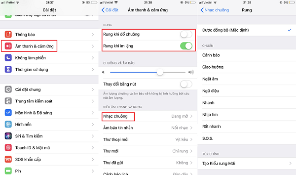 Cách 1: Thiết lập rung với 2 chế độ “Rung khi im lặng” hoặc “Rung khi đổ chuông”