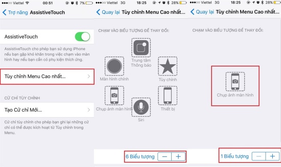 Bước 2: Tại đây, các bạn chọn mục Tùy chỉnh Menu cao nhất. Ở phần số biểu tượng, các bạn giảm xuống còn 1 biểu tượng bằng cách nhấn vào dấu (-)